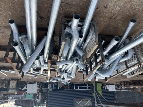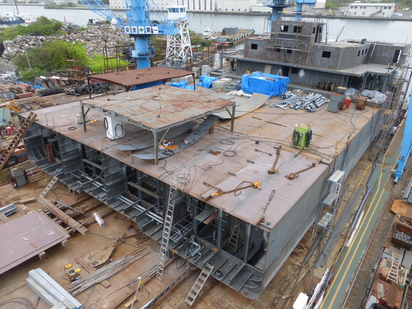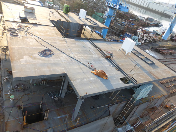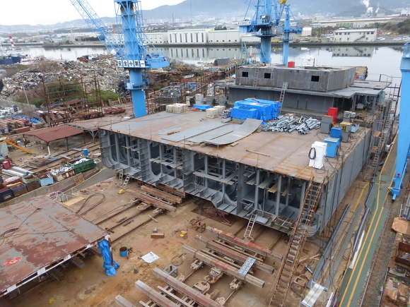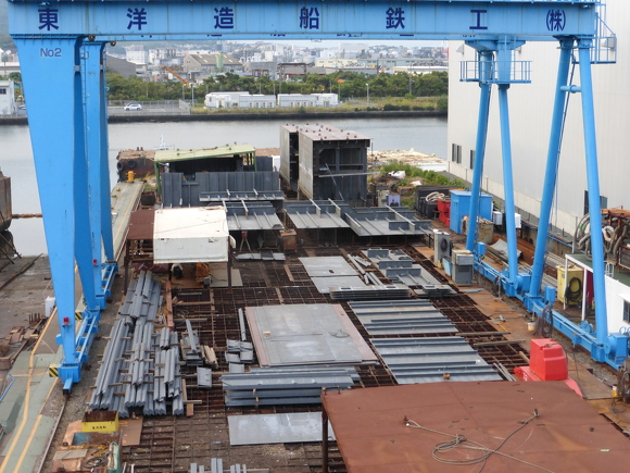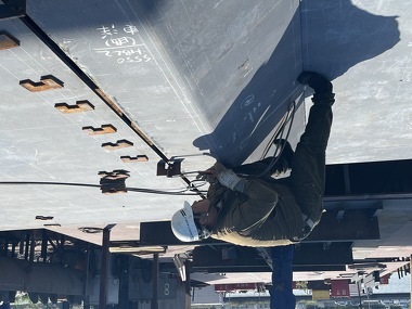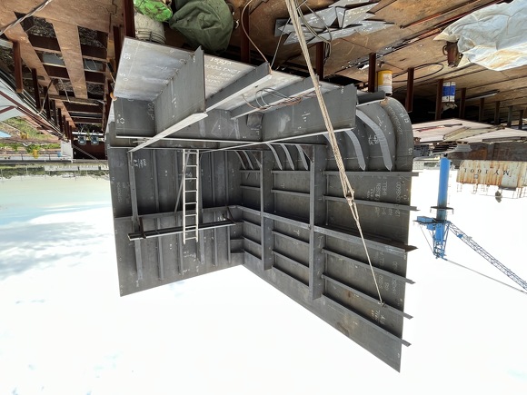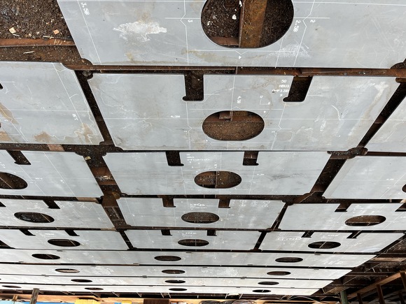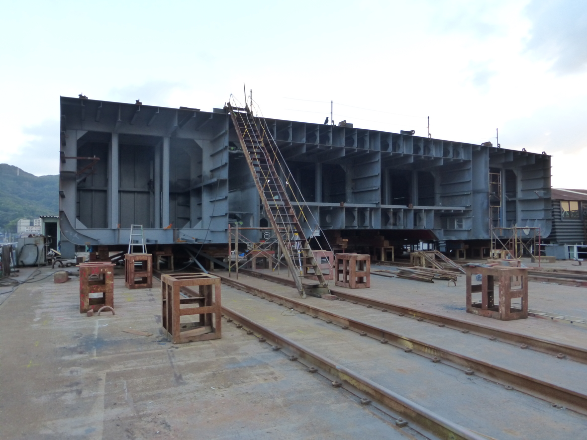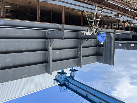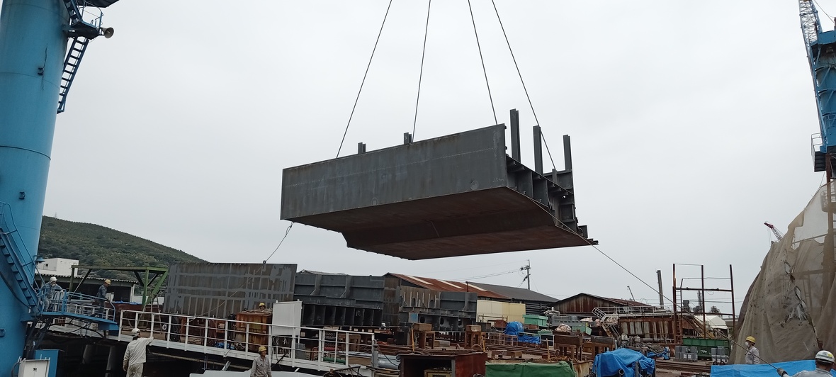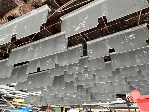 【大組】 小組として組んだ鉄板をブロックの形に組んでいく工程です。